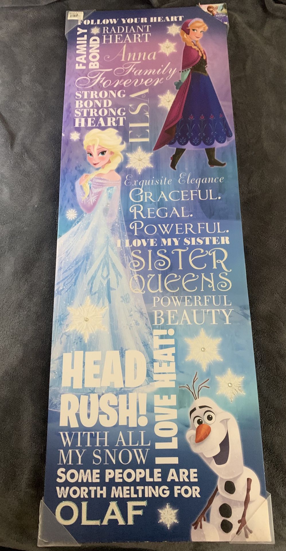 Bring a touch of Arendelle to any room! Features Elsa, Anna, and Olaf in vibrant colors on a sturdy wall sign. Perfect for a child’s bedroom, playroom, or Frozen-themed party décor. Brand new and never used – ready to hang!