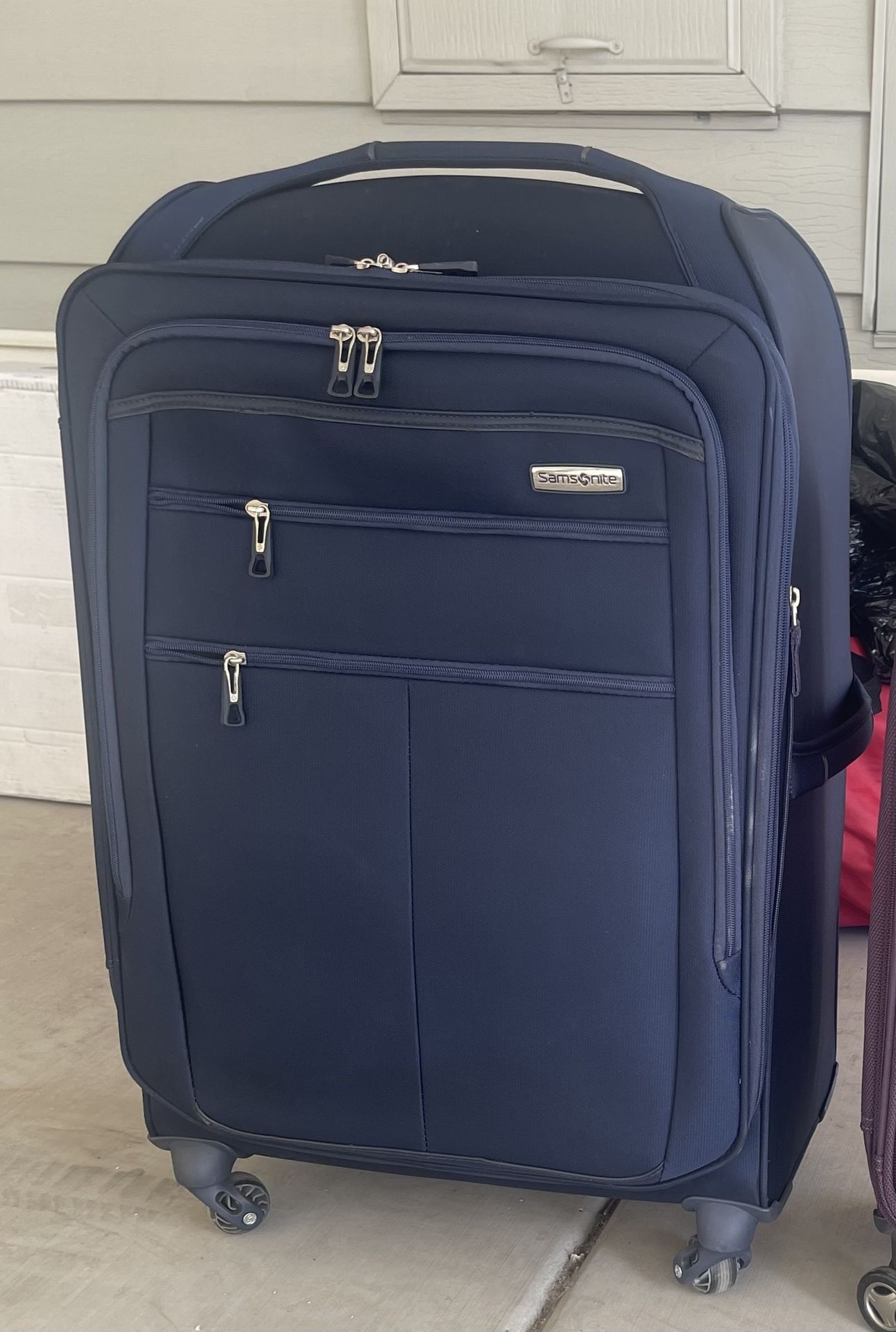 π Samsonite Excellent Quality Soft-side Soltye DLX Spinner Luggage "featuring durable polyester fabric" Exterior Expandable Pockets, and Four Spinner Wheels for Easy Maneuvering! 27β (Navy) + wheel height * Excellent Condition/no rips/tears ~ Like New! Asking $60 β’ local pick-up (Cave Creek Rd & Union Hills Dr)