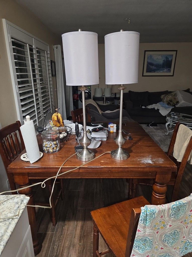 Pair, a beautiful tall tall table lamps exquisite the state-of-the-art. Gorgeous. Shades are okay, but the lamps are in great shape.
