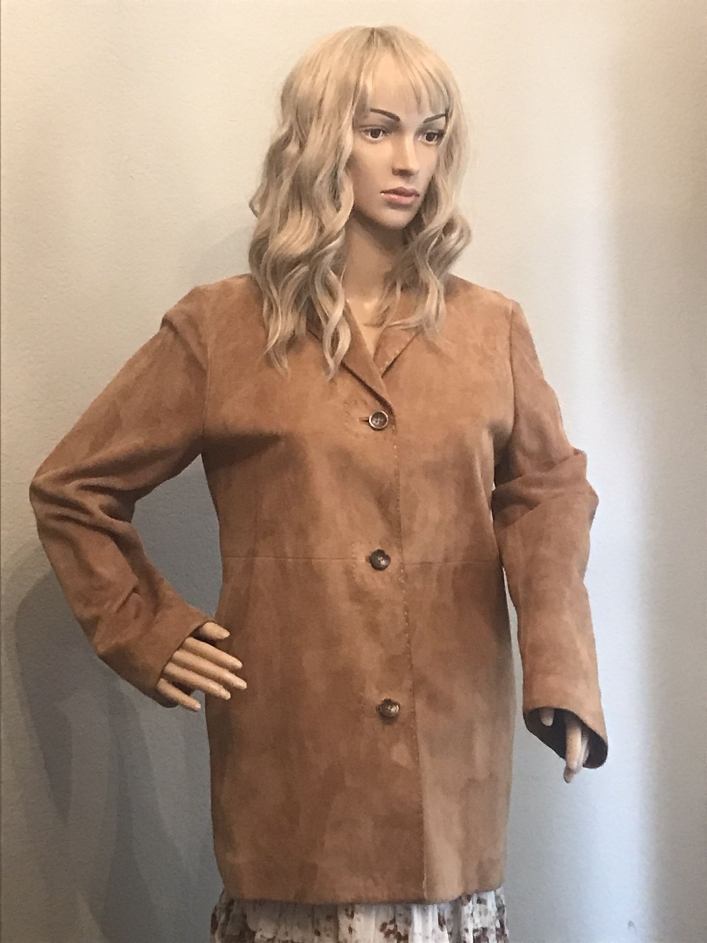 This vintage Banana Republic suede jacket is in good used condition. It has two slash pockets outside and one inside. Size ladies XS. X-Posted. In person, cash only sales.