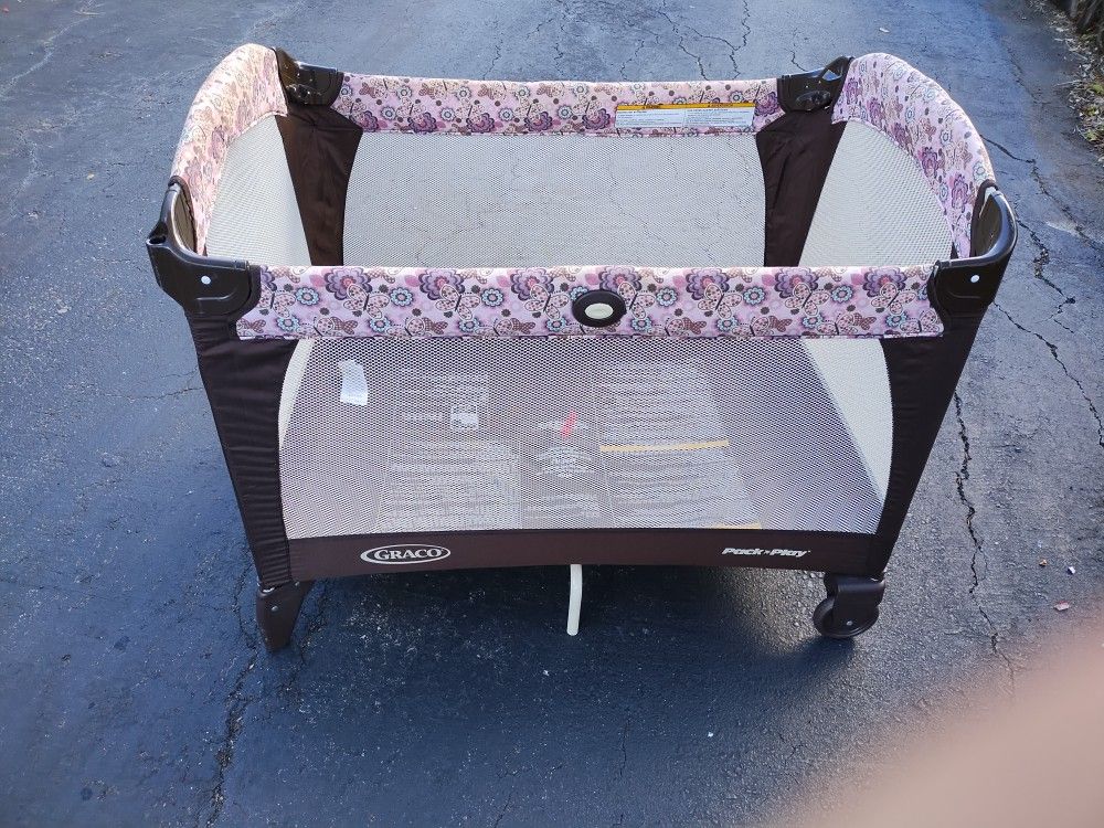 Grand Pack And Play Two Wheels On One Side Easy Lift Up And Move Packs Up With A Cover