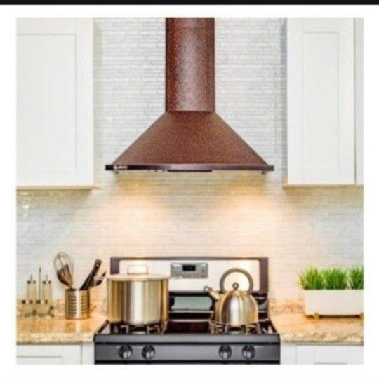 30".COPPER EUROPEAN STYLE WALL MOUNT OVEN HOOD WITH PUSH BUTTONS. RH0376