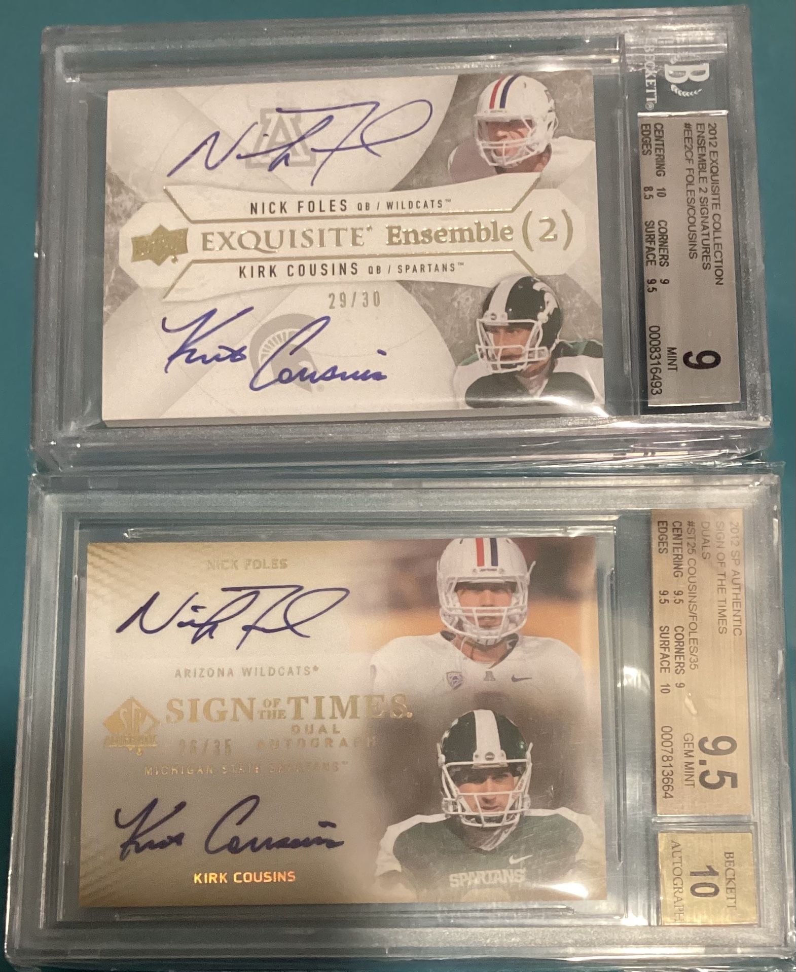 2x Nick Foles & Kirk Cousins Rookie Auto Lot Upper Deck Exquisite BGS 9! /30 & SP Authentic Sign Of The Times Auto BGS 9.5 /35