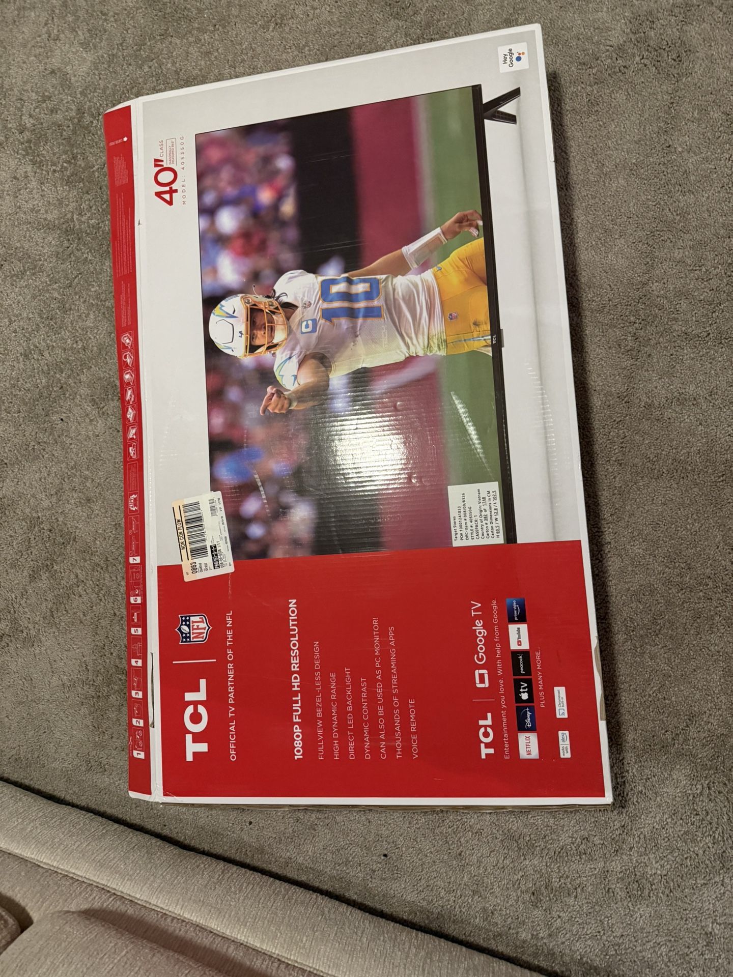 TV was purchased about 4 months ago and was used once and put back into the box. Reason for not using it was it didn’t fit my entertainment center the way I liked.