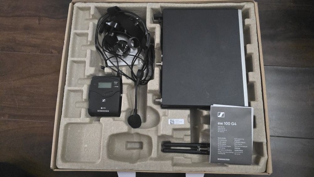 Sennheiser ew g4 a1 band 470-516mhz. Receiver, Transmitter, me3 headset microphone, power adapter, manual, rack wings and plate, world power plug, etc everything in original box.