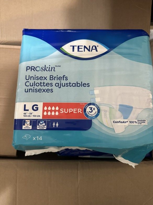 Adult diapers 2 full box each box has 4 bags. $30 each box one is unisex and the other is man.