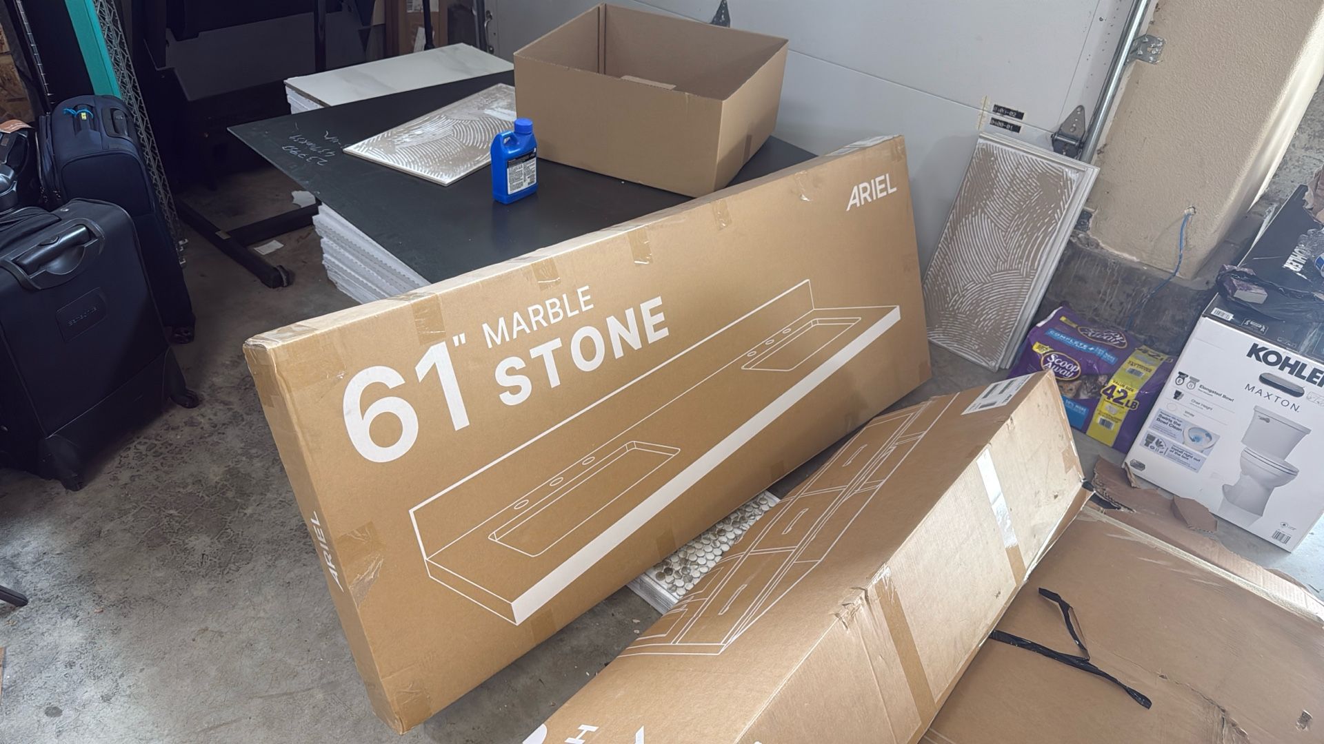Brand new never opened 61” Carrara Marble Double Rectangular Sink