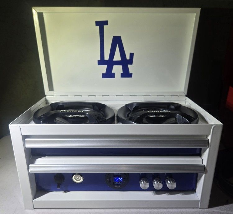 MIni Tool Box Speaker -Bocinas de 4 pulgadas -Amplificador Bluetooth 200w -Ajustes Treble-Bass-Volume -Bateria recargable 7 + horas -Cargador incluido -Conecciones soldadas -Varios Colores disponibles Opcional.- Luces LED, USB Charger