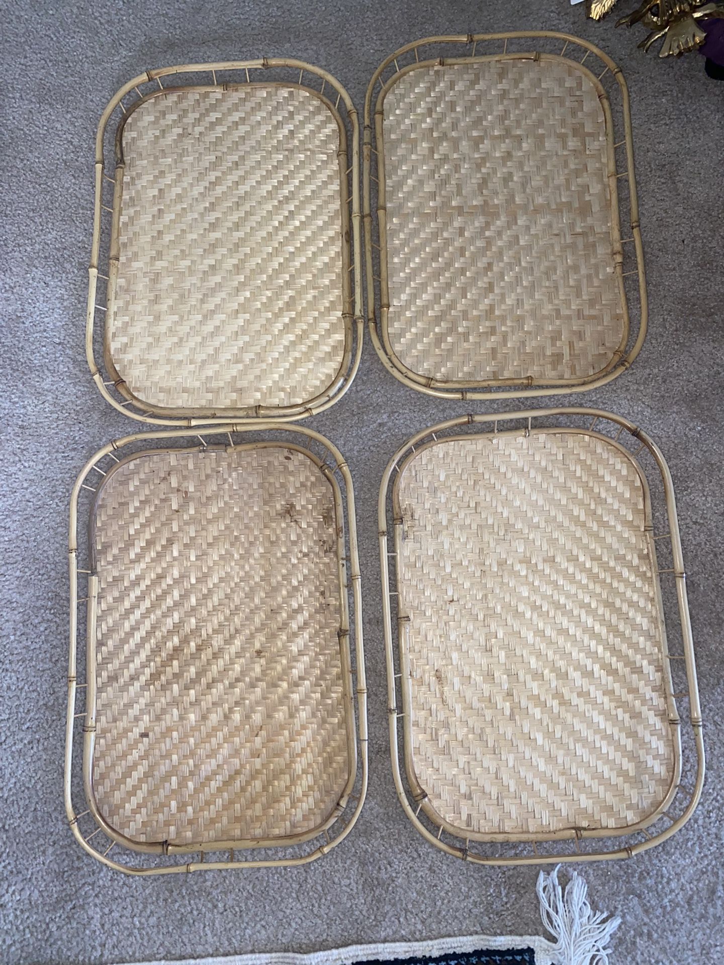 Set Of 4 Boho Bamboo Trays