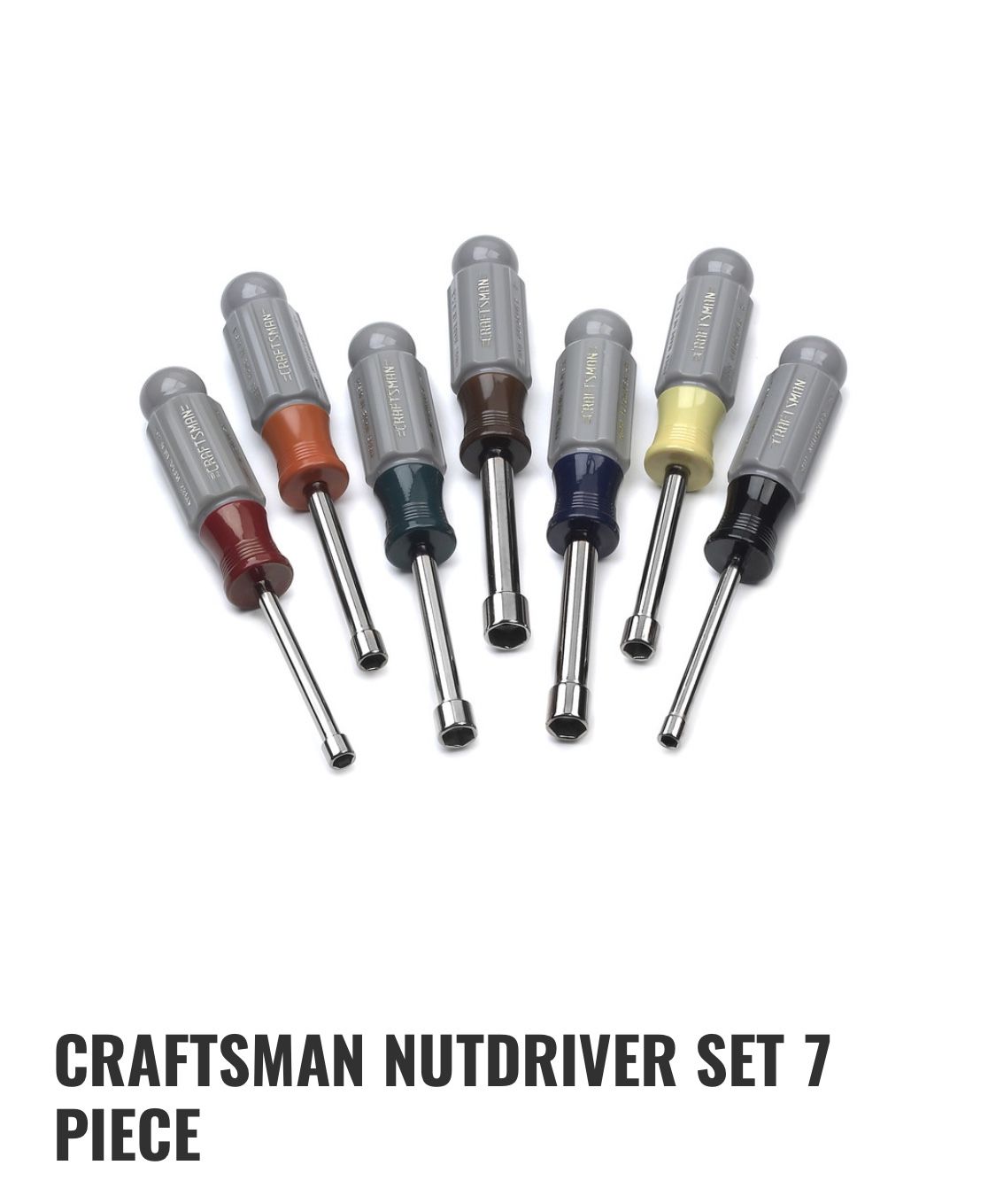 New Craftsman Brand Name: cm | Color: Assorted | Drive Size: Multi Size in. | Magnetic Tip: No | Metric: Metric | Number in Package: 7 pc. Size: 11, 10, 9, 8, 7, 6 and 5 mm. | Overall Length: 2.9 in. | Packaging Type: Clamshell | Shaft Length: 2.9 in. | Hollow Shaft: No Whether you're completing a tool collection or just need an alternative to your ratchet, the cm 7 Piece Metric Nut Driver Set will get the job done. Durable color-coded handles help you grab the tool you're looking for at a glance. Alloy steel sockets and shafts ensure durability and leverage whether you're loosening or tightening. | It gives you more options while you work | Color-coded handles let you quickly identify the right tool for the job | Plastic handles are lightweight and easy to grip | Made of steel. Craftsman tools are life time warranty.