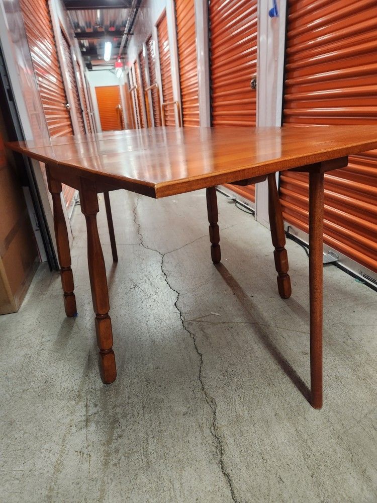 Antique Solid Wood Dining Table. Excellent for small spaces!!! This table has been LOVED for 5 generations! Has normal wear marks that can be refinished. Closed 21 3/4" x 21 3/4" tall Add 21" x 36" for each sleeve opened. Fully opened: 63"L x 21 3/4"W x 21 3/4 H