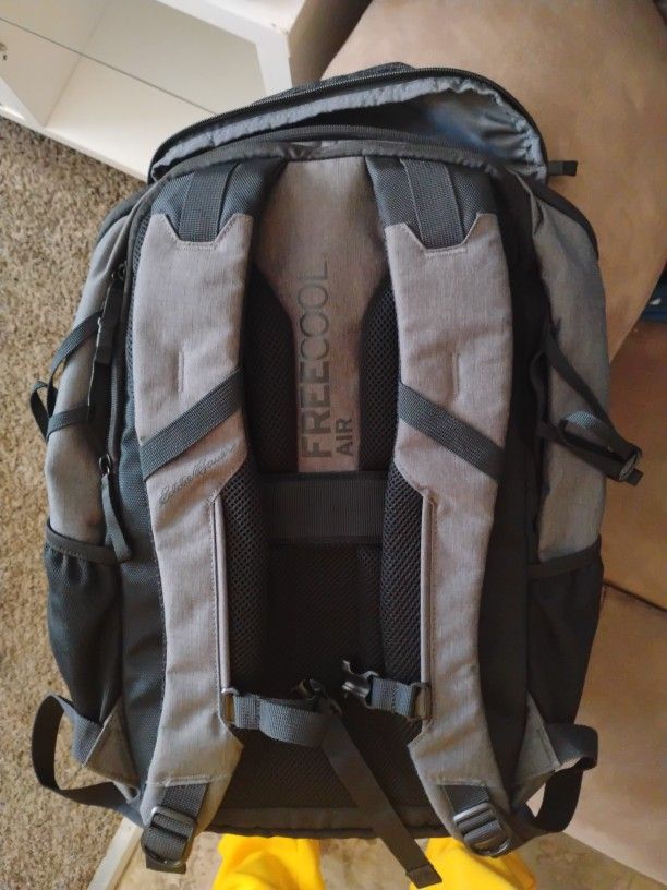 This is an Eddie Bauer Adventurer Trail or Adventurer 30L backpack featuring the FreeCool Air back panel technology.