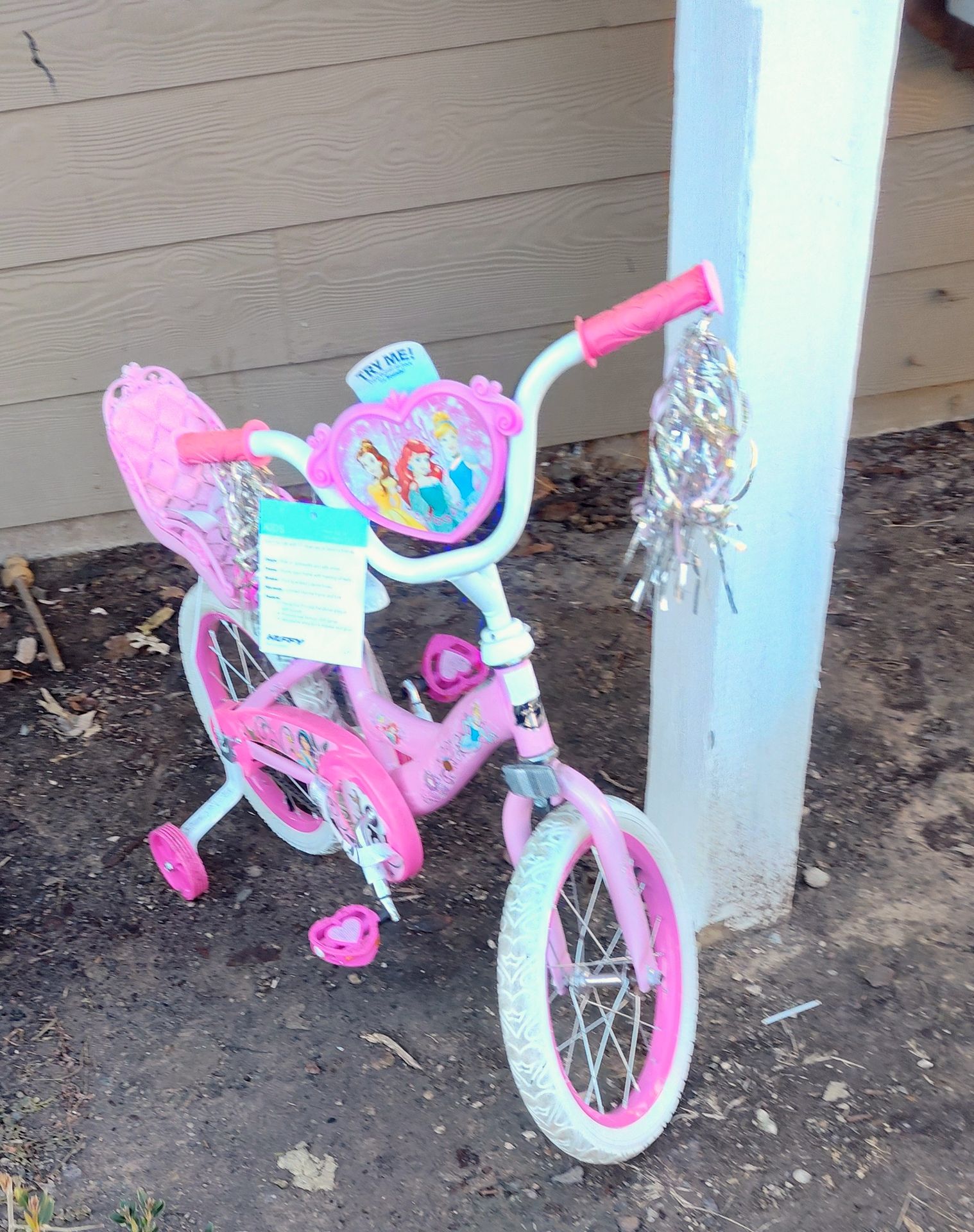 Girls bike with training wheels. Barely used. For a 4-6 year old.
