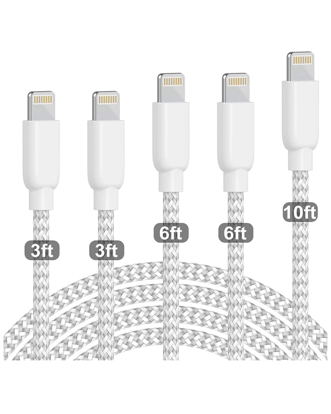 Brand new! 5pcs iPhone Charger, MFi Certified Lightning Cable 5 Pack (3/3/6/6/10FT) Durable High-Speed Charging & Data Syncing Cord Compatible iPhone/iPad - Silver&White