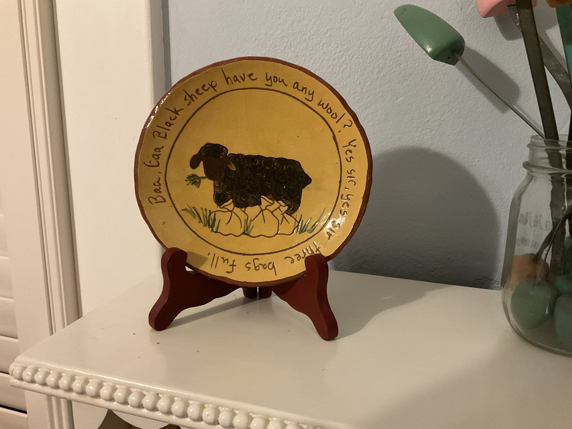 Vintage Pam Arm rust Folk Art Hand Painted Baa Baa Black Sheep Collectible Plate