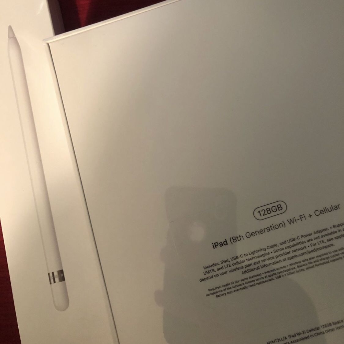 Apple iPad 8th generation cellular + wifi 128gb $550 with Apple Pencil $100 for sale for $650 or trade for iPhone 15 Pro Max