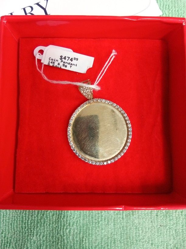 Coin Pendant 14kt Yellow Gold 6 .9g Cubic Zirconium Stones around Pendant