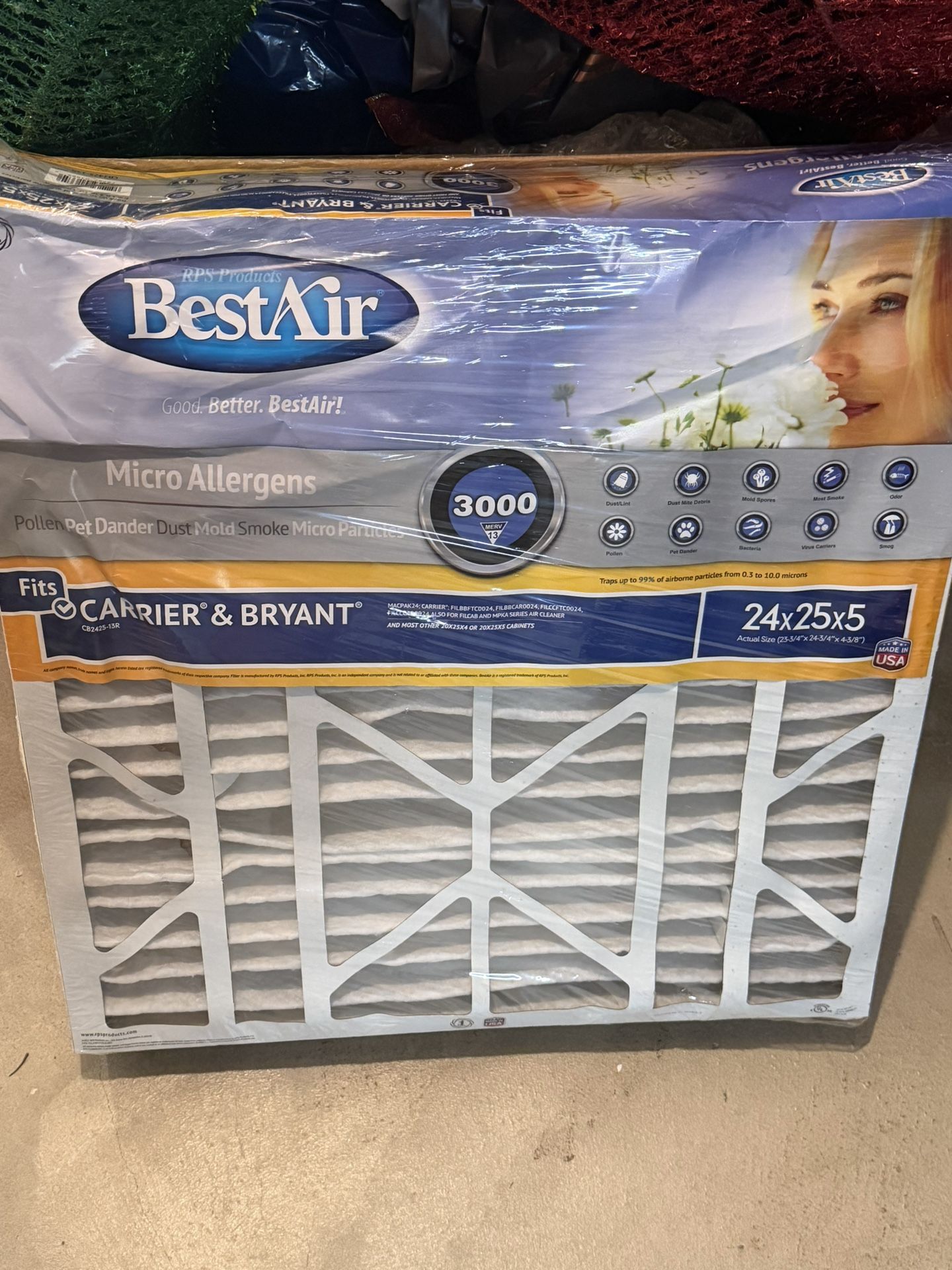 Brand new, unopened HVAC filter size 24X25X5 for free. Had new unit installed and no longer fits my system.
