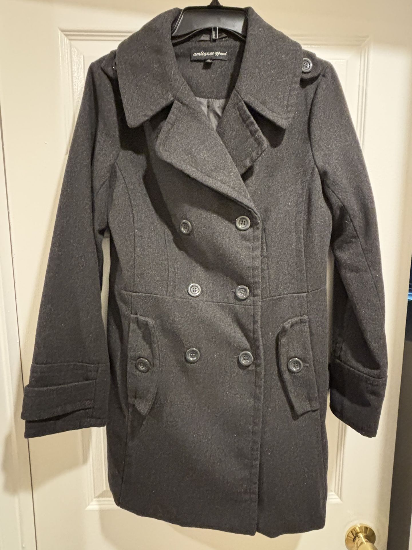 The following item is a women’s wool coat made by Ambiance. It is charcoal in color, size large and in great condition. My daughter is cleaning her closet. Pickup in South Temecula Asking $20.00
