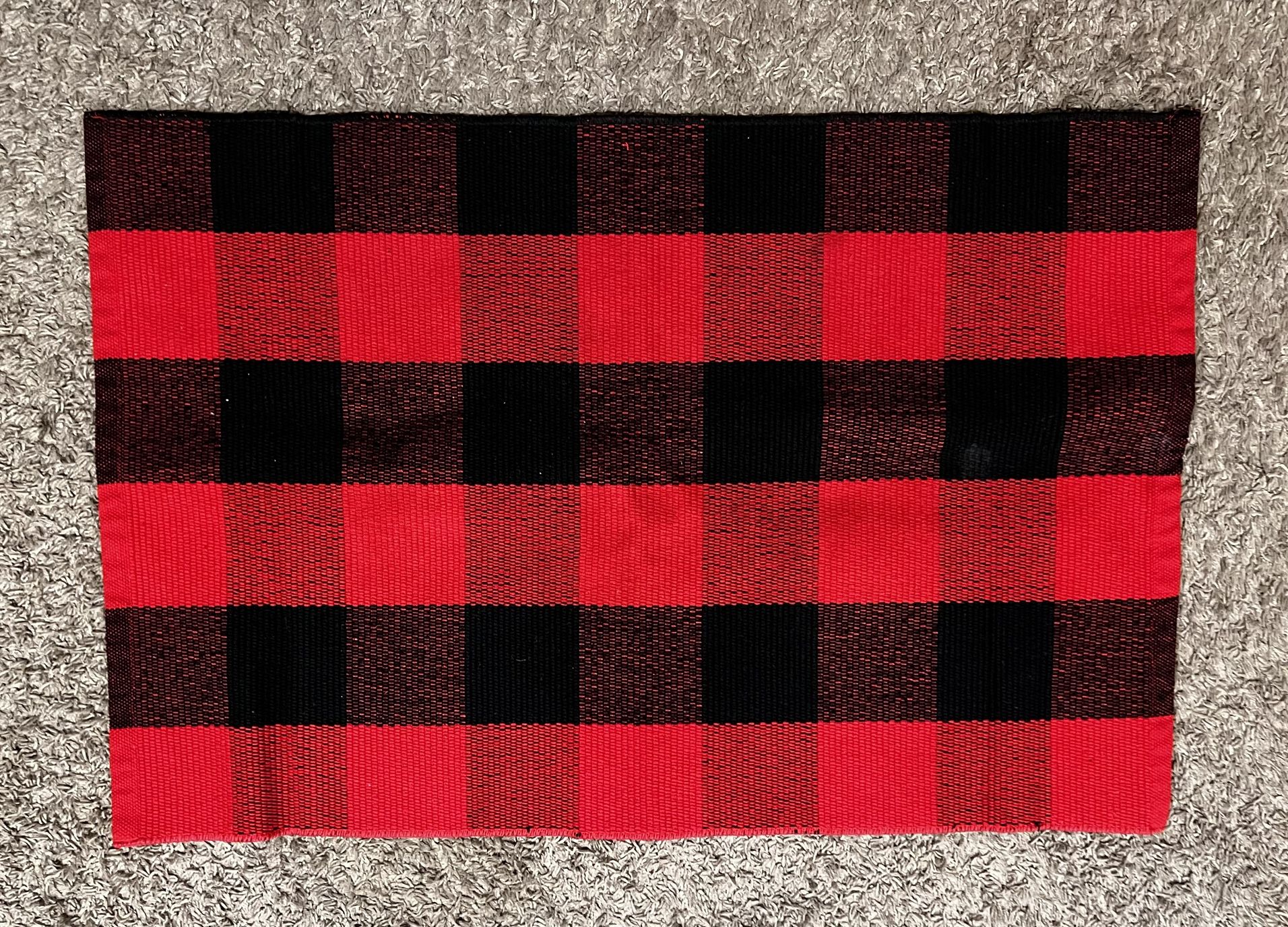 Washable plaid outdoor rug. 2 picture is an example of it. In great conditions.