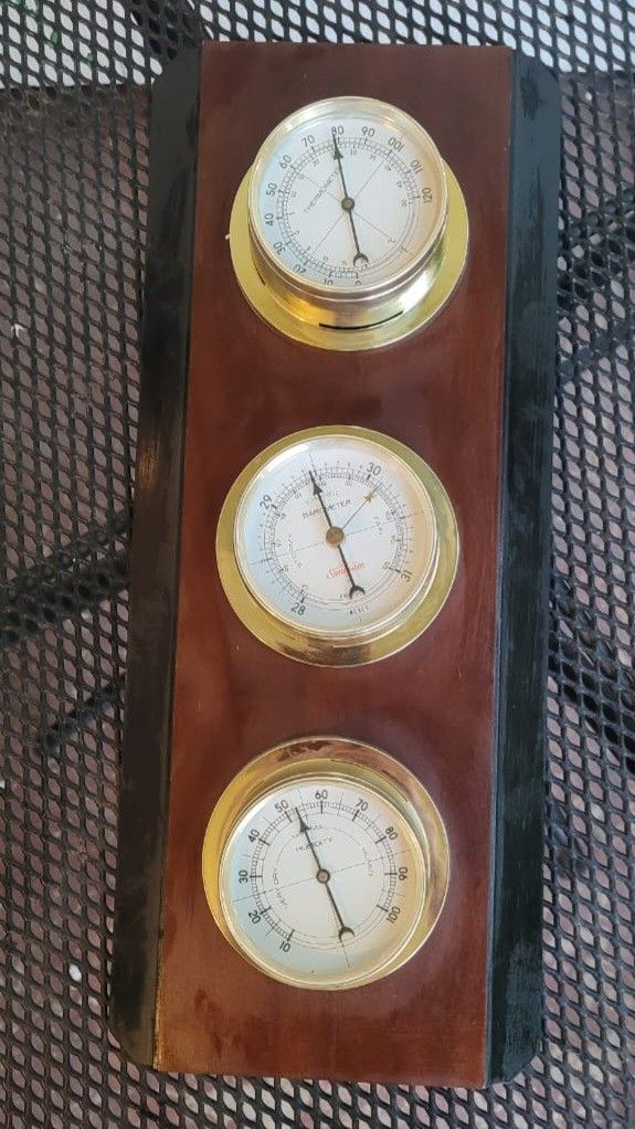 This vintage Sunbeam weather station is a must-have for any collector or enthusiast of scientific instruments. Made of beautiful wooden, this piece features a thermometer, barometer, and humidity meter, making it a versatile and functional addition to any home or office. The brand name Sunbeam is synonymous with quality and reliability, and this weather station is no exception. Whether you're a meteorologist or just want to know what the weather is going to be like today, this station will provide you with accurate and up-to-date information. Don't miss out on the opportunity to own this unique and charming piece of history.