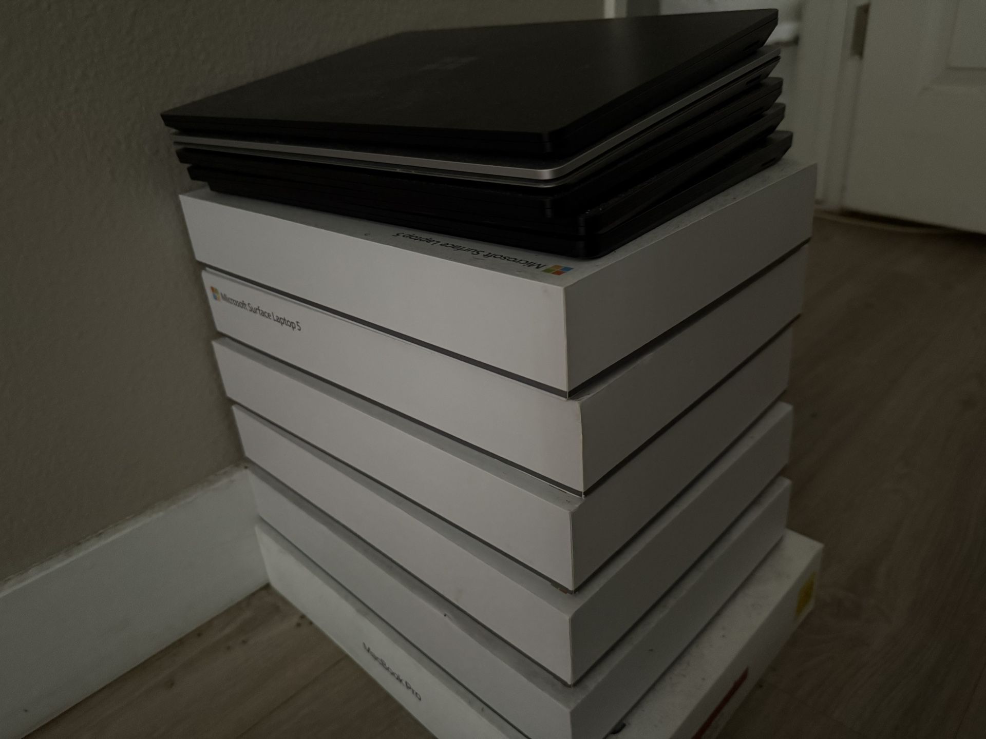 Selling 3 Microsoft Surface Laptop 5 units with no boxes. These were previously used in my home office and are in excellent condition. I’m pricing these well below market value for a quick sale! Specs: Processor: Intel Core i5 (12th Gen) RAM: 8GB Storage: 256GB Display: 13.5" PixelSense Touchscreen Color: Matte Black OS: Windows 11 Pro (Fresh install) Condition: 9/10 condition. Screens are flawless. Battery health is great. Does not include original Microsoft charger. Price: $400 each Why buy from me? Tested and fully functional. Factory reset and ready for a new user. Local pickup in Colorado Springs (Safe public meetup). Serious buyers only. First come, first served. Message me if you want to swing by and test one out