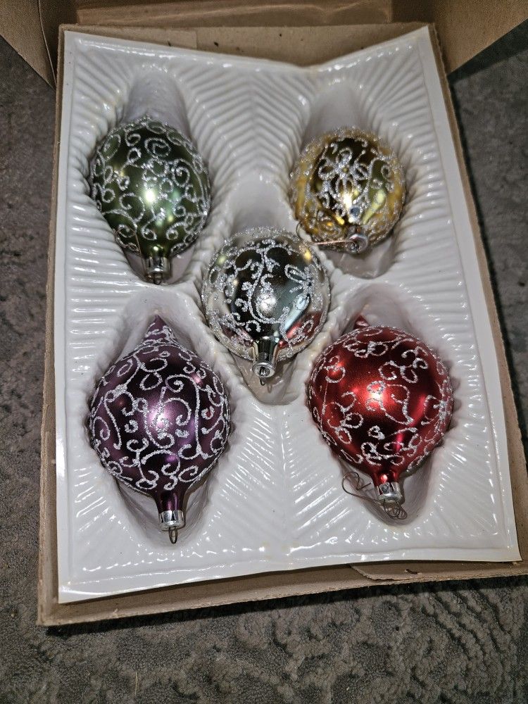 Amazing european vintage handcrafted christmas tree ornamatt. 6 boxes all the boxes are vintage and each box is different ornaments