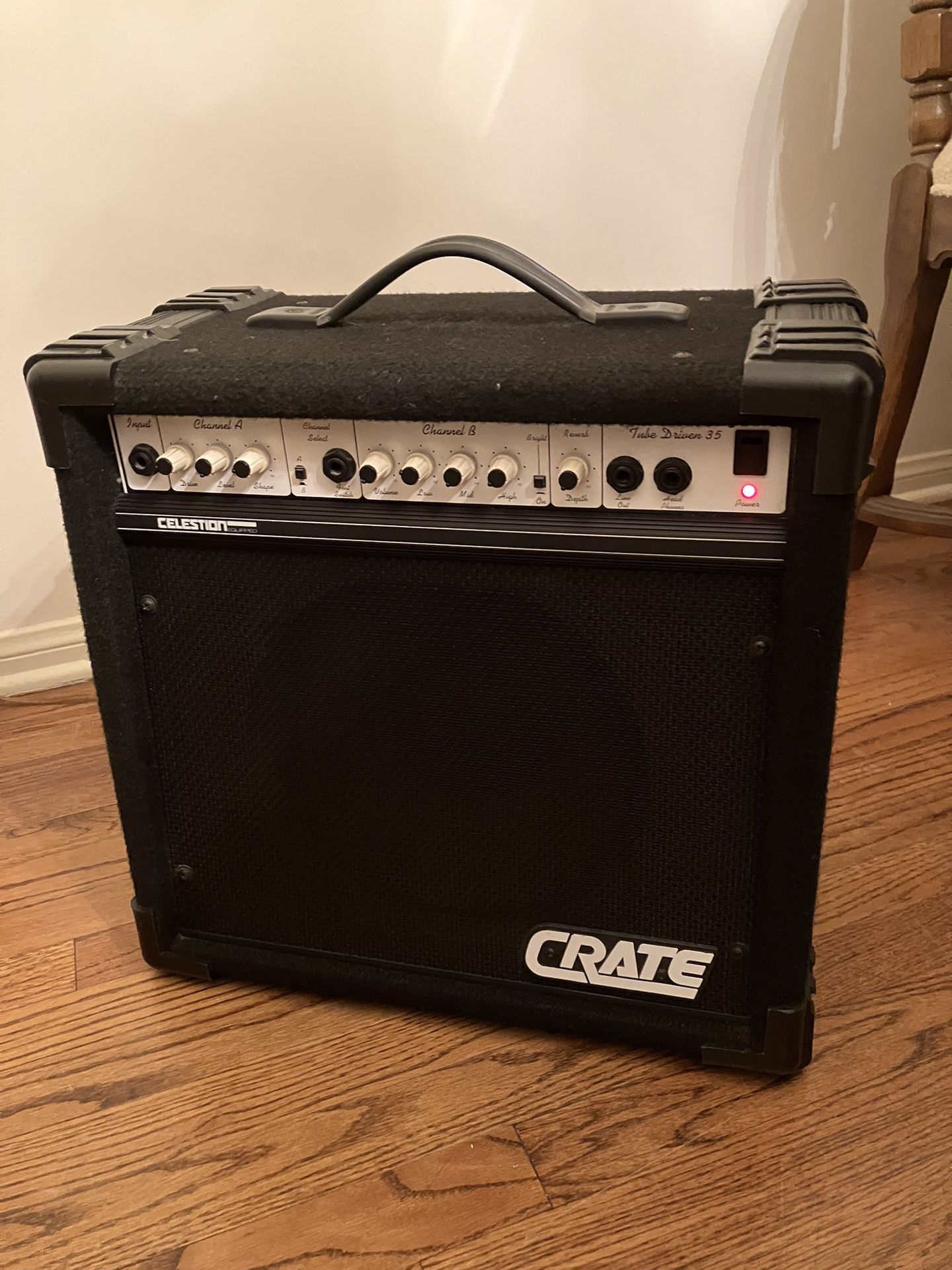 crate td35 guitar tube amp with celestion speaker as used in marshall amps. looks good, plays great, can definitely gig with this. will need cleaning for pots that occasionally crackle