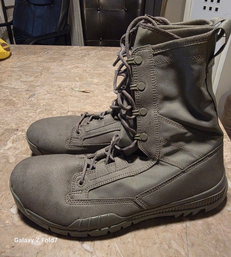 Model: Nike SFB Gen 2 8" Combat/Tactical Boots. Condition: Excellent used condition used once. Features: Lightweight canvas and synthetic upper for breathability, durable rubber outsole with great traction, and DA PAM 670-1 compliance. Color: Military Sage Green.