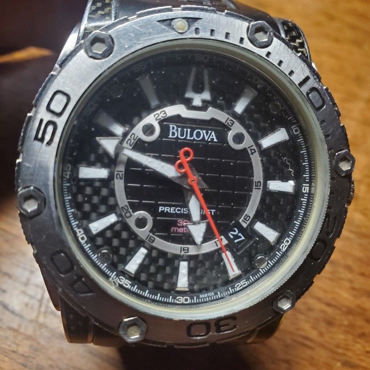 Bulova Precisionist Men's 46mm Watch Champlain Black Fiber 96B156 300M Water Resistance