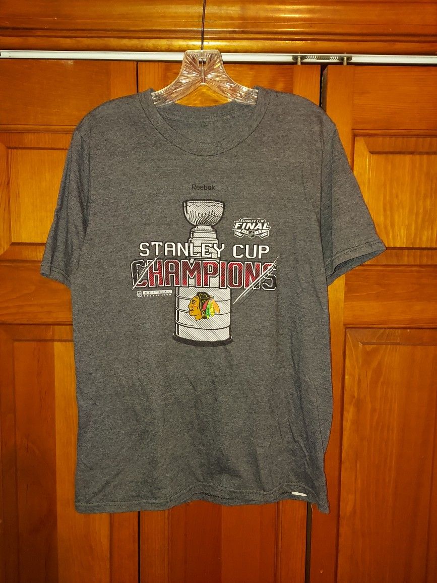 YOUTH XL-18 CHICAGO BLACKHAWKS 2015 STANLEY CUP CHAMPIONS REEBOK SHIRT
