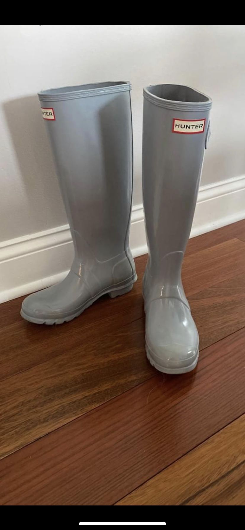 Ladies tall Hunter boots Size 6 Gray. Used condition