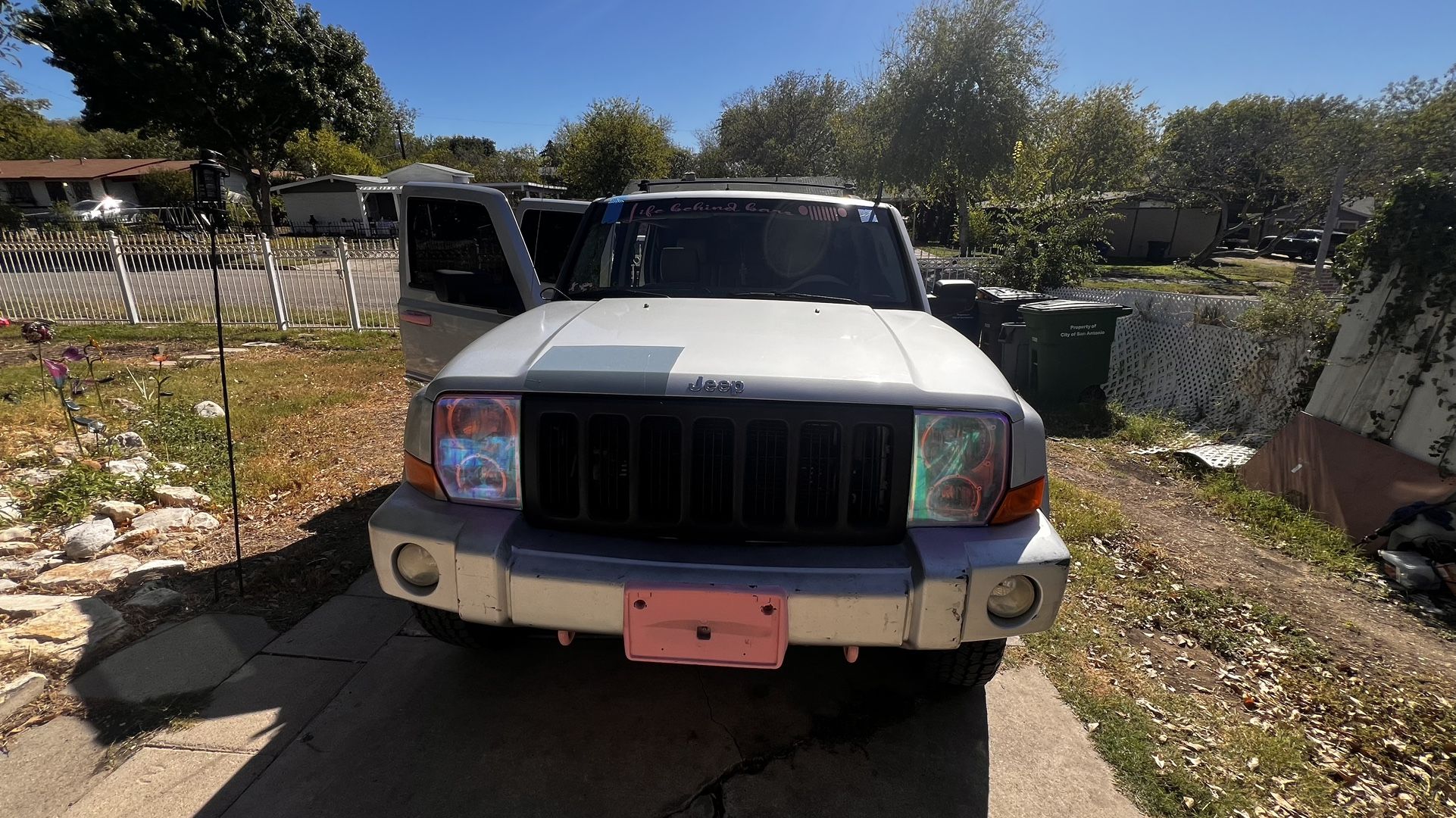 Just had the engine rebuilt (100,000 and with 1 year warranty). Has brand new all terrain tires, brand new windshield, brand new alternator,rebuilt engine, brand new stereo, new wiper blades and other parts (listed on invoice). The Jeep runs well. Will need some minor work and has a few cosmetic flaws. Title in hand. Cash only serious inquiries only. Will not respond to any low offers. This jeep has 3rd row seating, leather seats a new battery, and V8 5.7 Hemi. The second row and the third row are in immaculate condition. The front row has some wear and tear. Jeeps has a functional sunroof and 2 small discovery windows in the second row. Will Come with paperwork of work done, recent diagnostic codes and title.