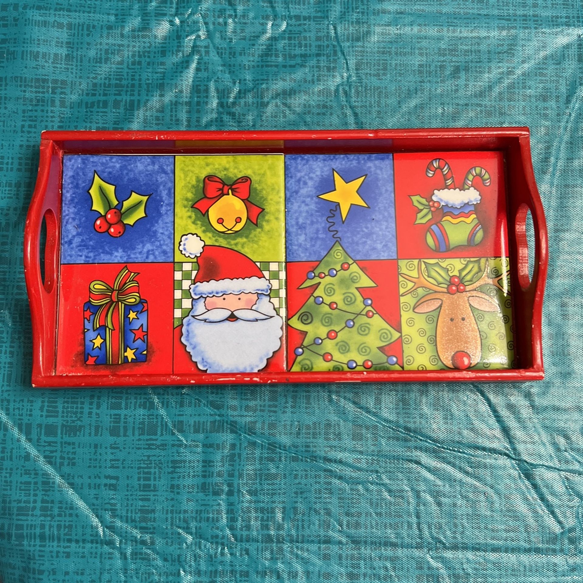 Christmas Wood Tray With Tiles