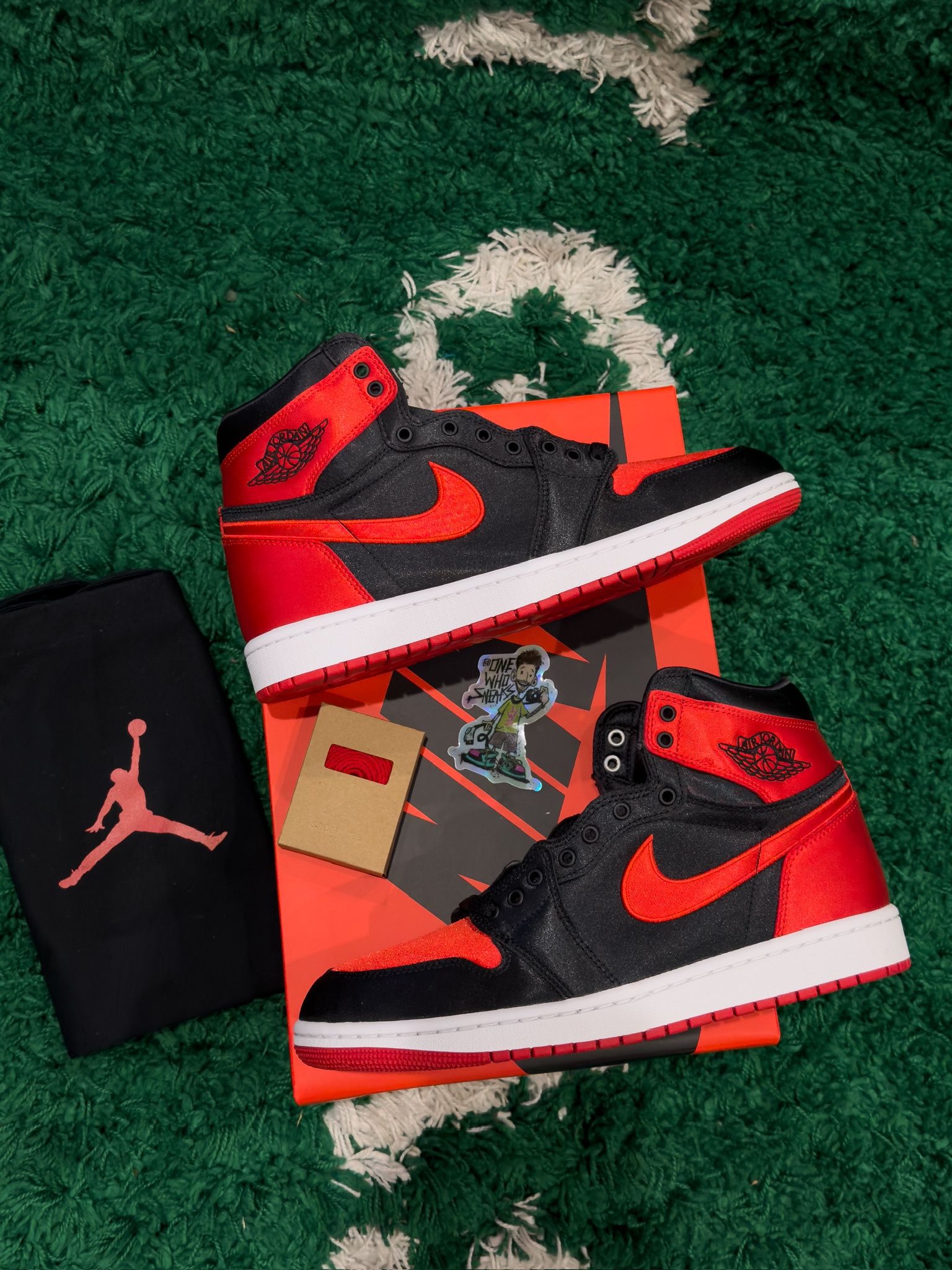 Jordan 1 Retro High OG Satin Bred. Sneakers are brand new, never worn and include original box and all accessories. Sizes available are: 10.5W (9 Men’s) 11.5W (10 Men’s) No trades, cash, Zelle, or Apple Pay only IG @onewhosneaks off white, travis, bape, supreme, jordan, yeezy, gucci, kith, asics, new balance