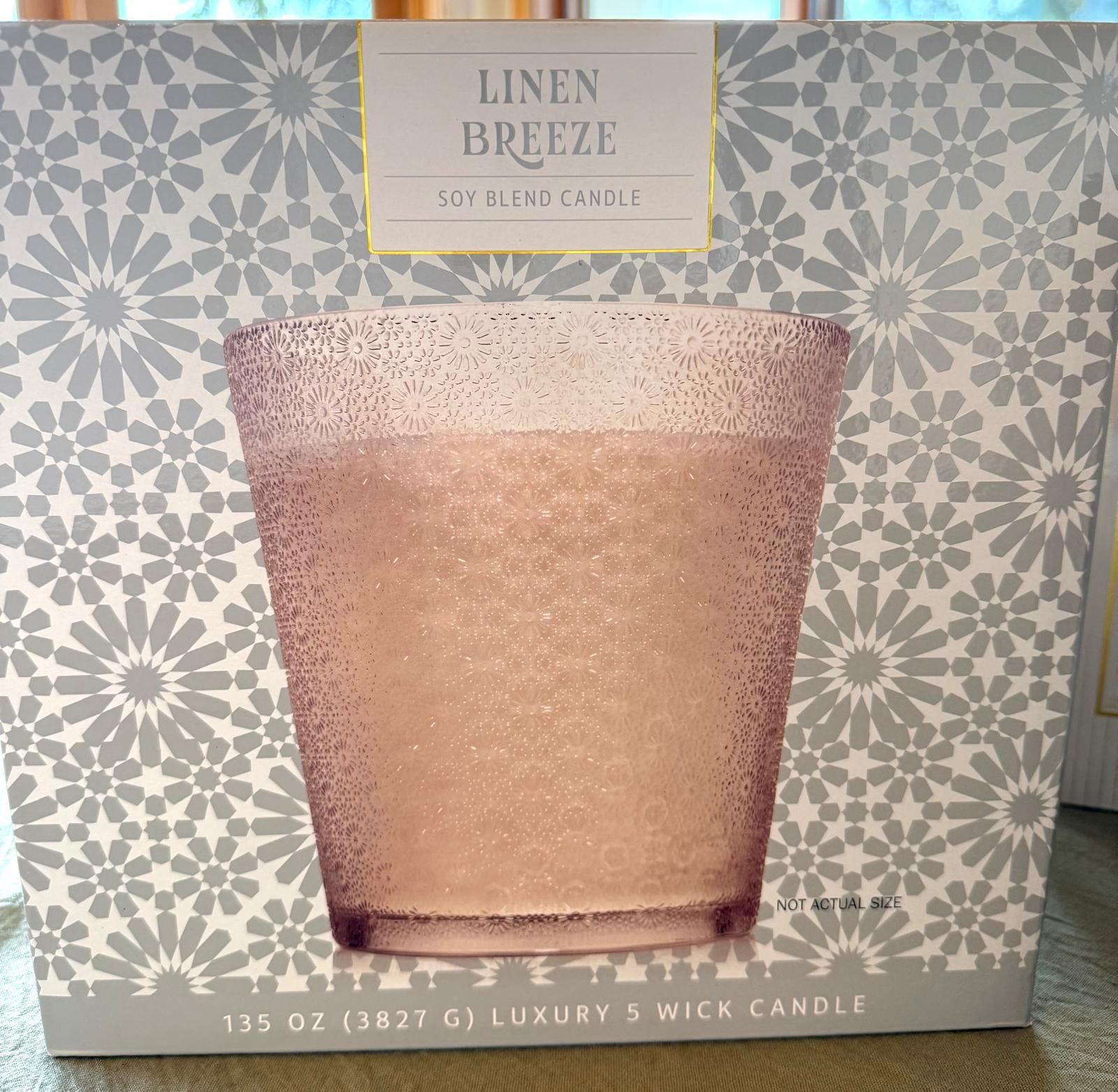 Beautiful luxury 5-wick candle in Linen Breeze scent. • 135 oz large statement candle • Elegant textured glass design • Stage furniture piece from a Malibu home • Open box but never used / never burned • Perfect for home decor, staging, or gifting This is a high-end oversized candle that looks amazing in living rooms, entryways, or luxury setups. 📍 Pickup in Malibu