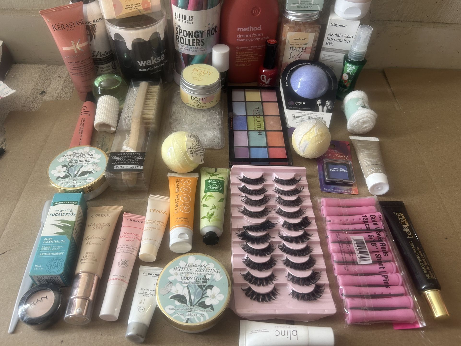 See all photos. Everything included. Makeup, hair products and tools, bath and body, lotions, oils, etc. all new.
