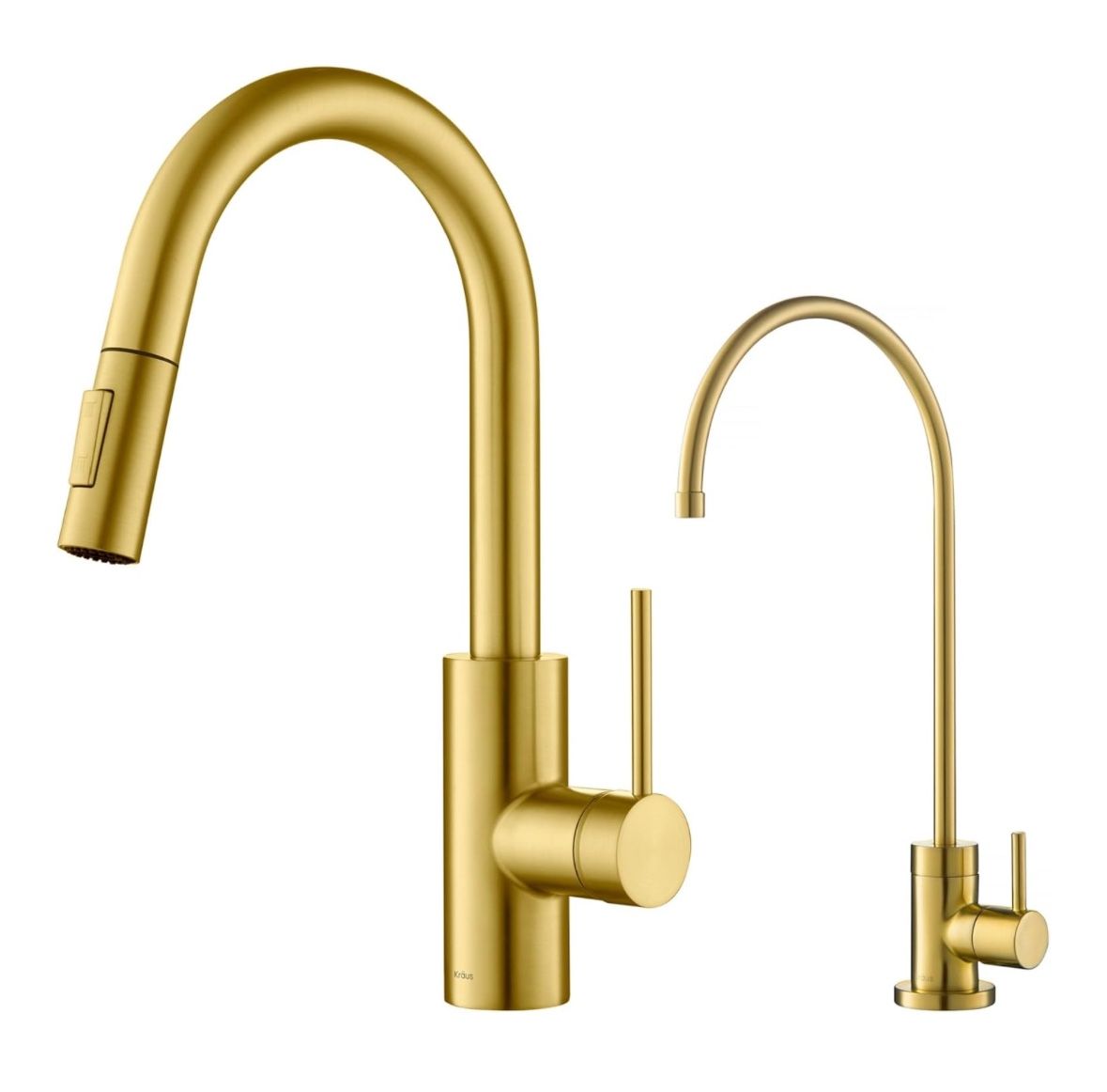 KRAUS Oletto Pull-Down Kitchen Faucet and Purita Water Filter Faucet Combo in Brushed Brass, KPF-2620-FF-100BB Brushed Bronze Pull Down & Filter Fauce