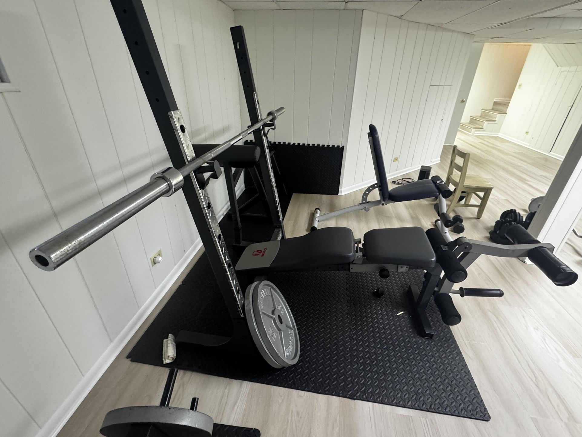 No bar and weights included Olympic 7ft bar cost 50 bucks