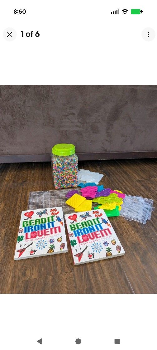 Huge Fuse beads crafts set. A full large bin of fuse beads and multiple accessories, shapes, paper, books. Pre owned condition - please see pictures. Pick up only.