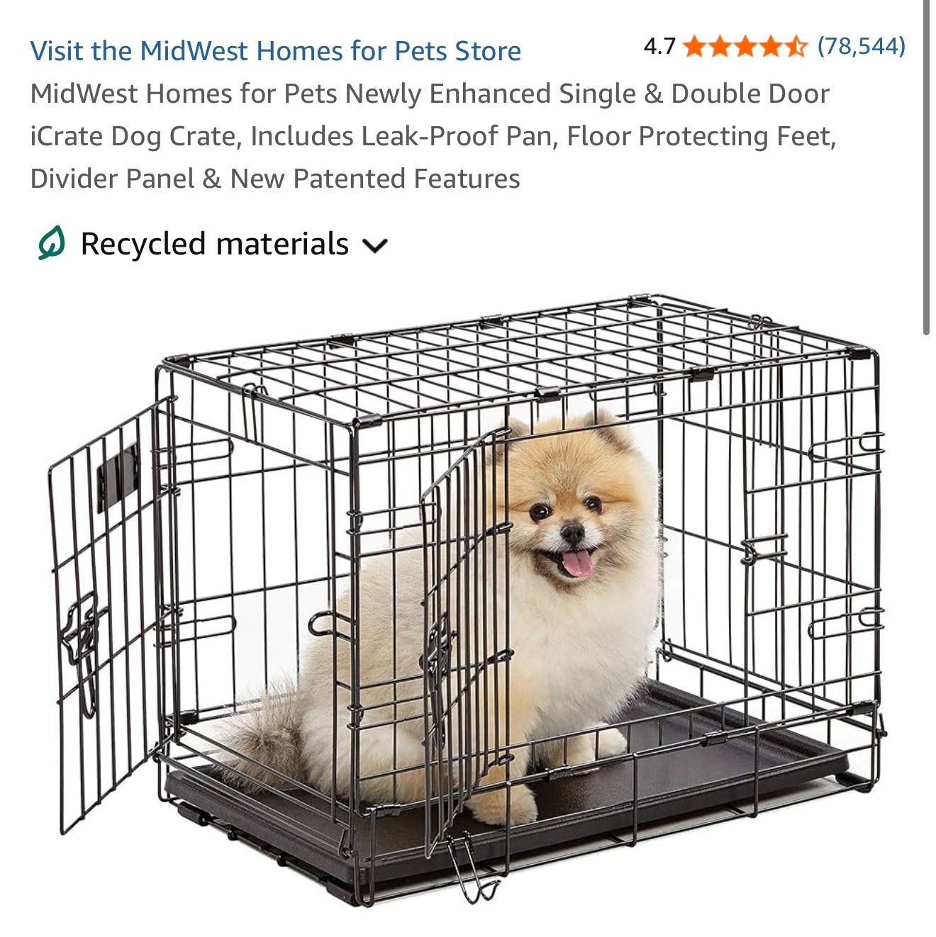 Product Dimensions 23"L x 14"W x 16.15"H Material Metal Specific Uses For Product Indoor Special Feature Secure, Foldable, Lockable, Adjustable Included Components Removable Tray, Divider Newly enhanced with added security features to keep your pet safe | Slide-bolt door latch now feature patented Paw Block and locking tips to create a safer, more secure home for your pet iCrate double door dog crate measures 22.51L x 14W x 16H inches and is suitable for XS dog breeds with an adult weight up to 12 pounds. If your dog’s weight or measurements are on the higher side for this crate, we recommend buying the next crate size up Dog crate includes a divider panel, durable & leak-proof plastic pan, protective rubber feet, carrying handle, and customer support team based in Indiana Easy to assemble & portable | Dog crate sets up in seconds with no tools required and conveniently folds flat for travel Durable & strong, quality construction creates a secure place for your dog to fulfill their natural instinct to den. Proper ventilation, large door openings with low thresholds, and rounded corner clips make iCrate a safer crate experience for your dog