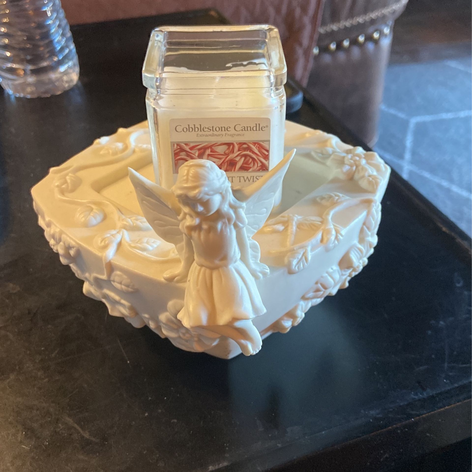 5” Like New Angel Css As Nike Holder w/new Cobblestone Candle