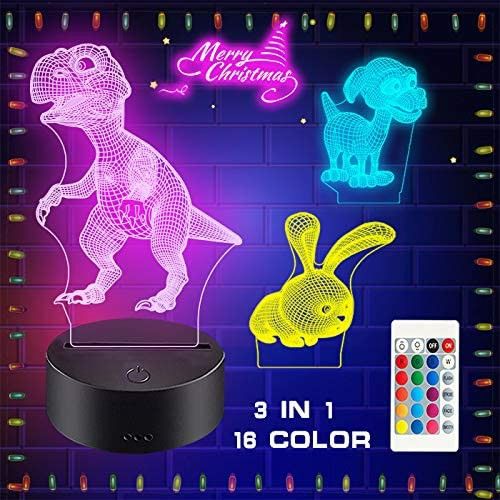 3D Night Light, ZSPENG Illusion Table Lamp, 3 Acrylic Floors and Remote Control 16 Colors Change Decoration Lamp for Kids, Christmas New Year Birthday Gifts for Kids (Dinosaur, Rabbit, Dog)