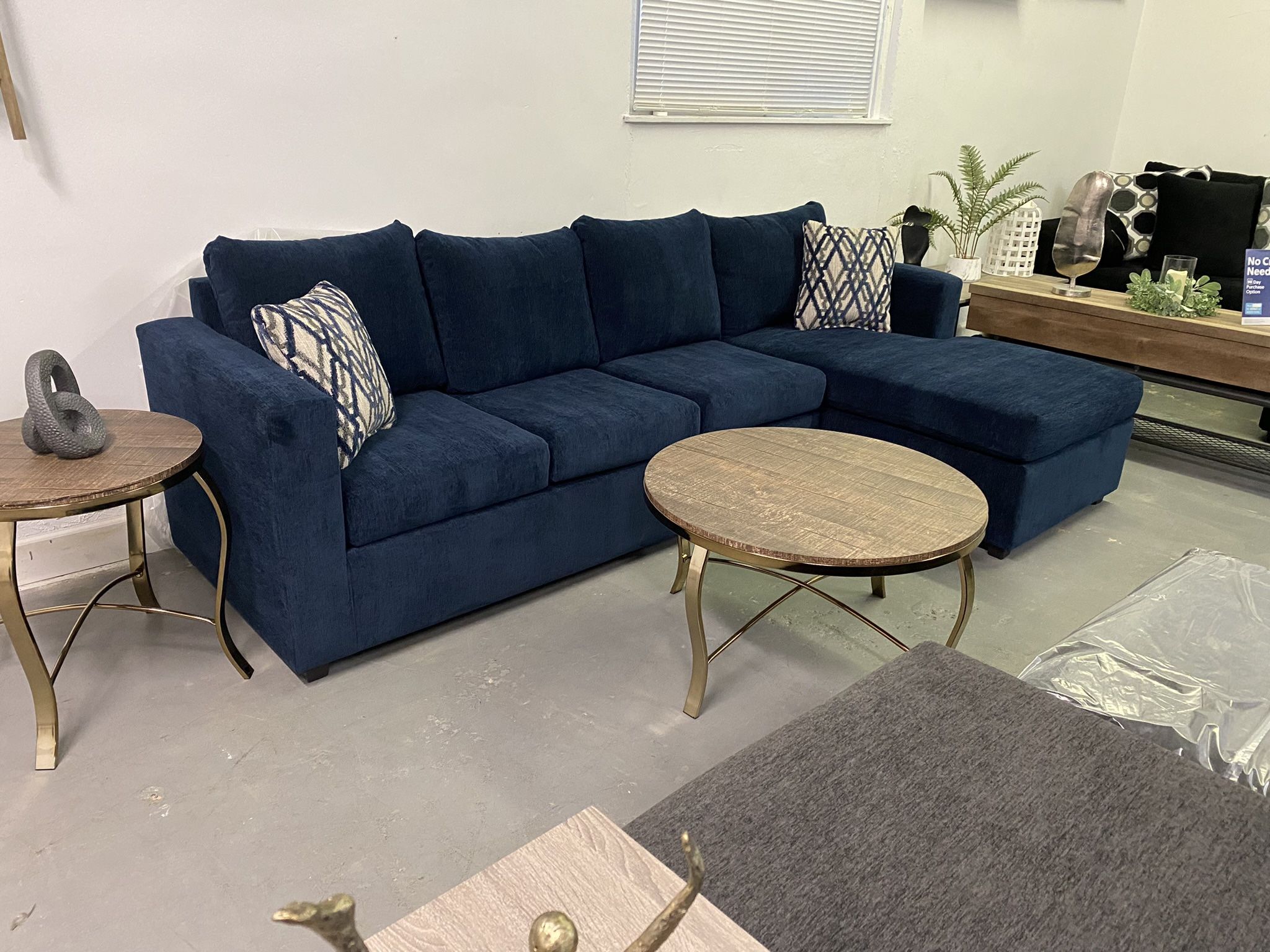 Blue sectional with pillows¡¡NEW!! Available in ✅black ✅brown ✅grey ✅blue ‼️Take it home with only $39 easy approval ‼️ 100 days same as cash no interest Come pick up or ask for delivery 🚚