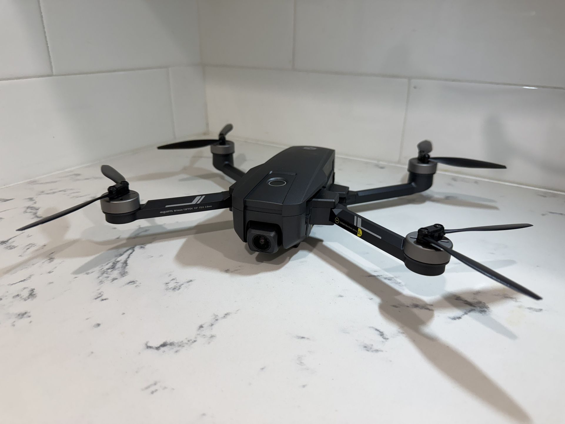 In great condition Comes with 2 batteries, charger, replacement propellor blades, remote controller Tiny hole on rear left side due to accident drop (see pic) * Integrated Remote ID * GPS Camera Drone * 4k @30fps * EIS(electronic image stabilization) system * 2 batteries / 23 minutes each flight time * Brushless motors * 5 GHz FPV transmission / 1640 ft * Special features such as auto return home