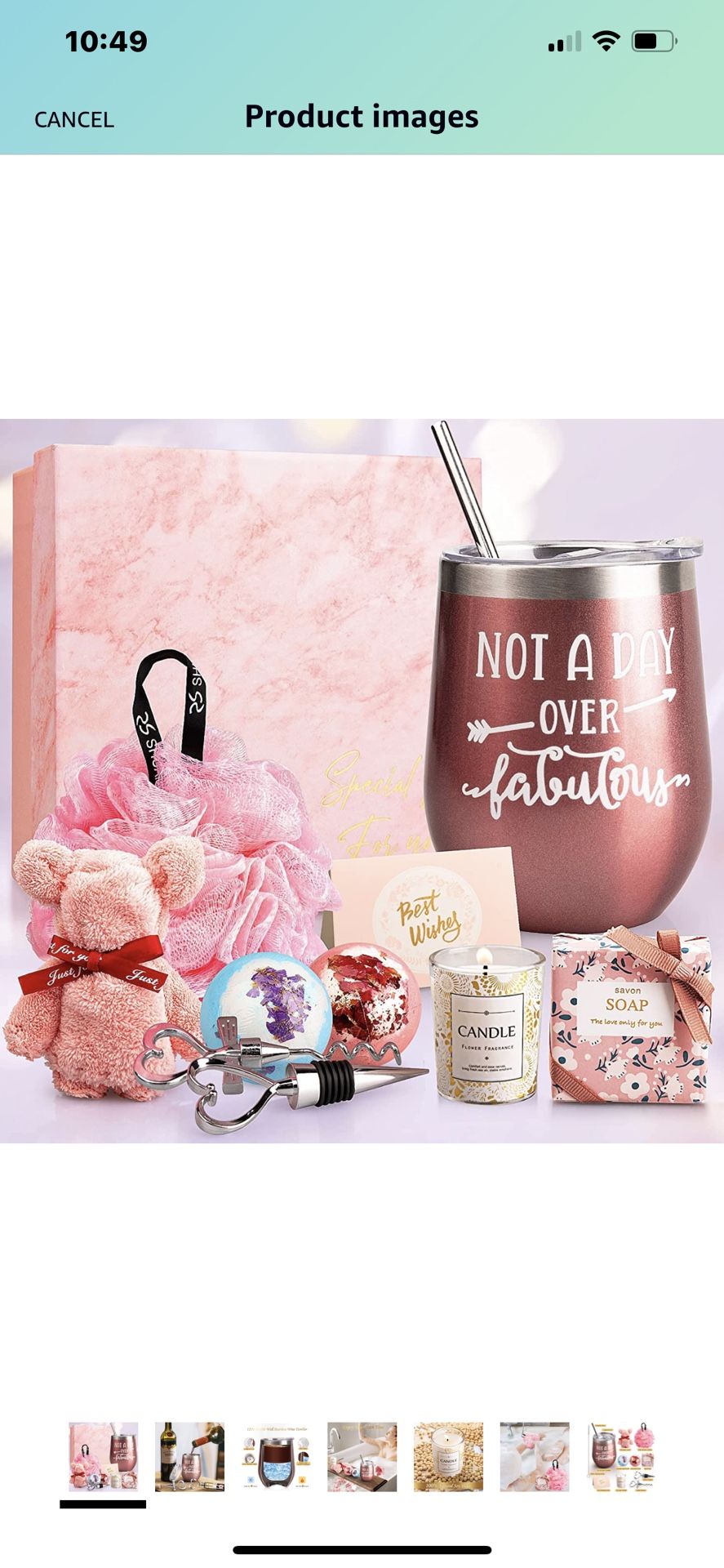 Birthday Gifts for Women, Funny Gifts for Her, Relaxing Spa Gifts Set with Insulated Wine Tumbler, Perfumed Soap, Bath Bomb, Scented Candles, Loofah S