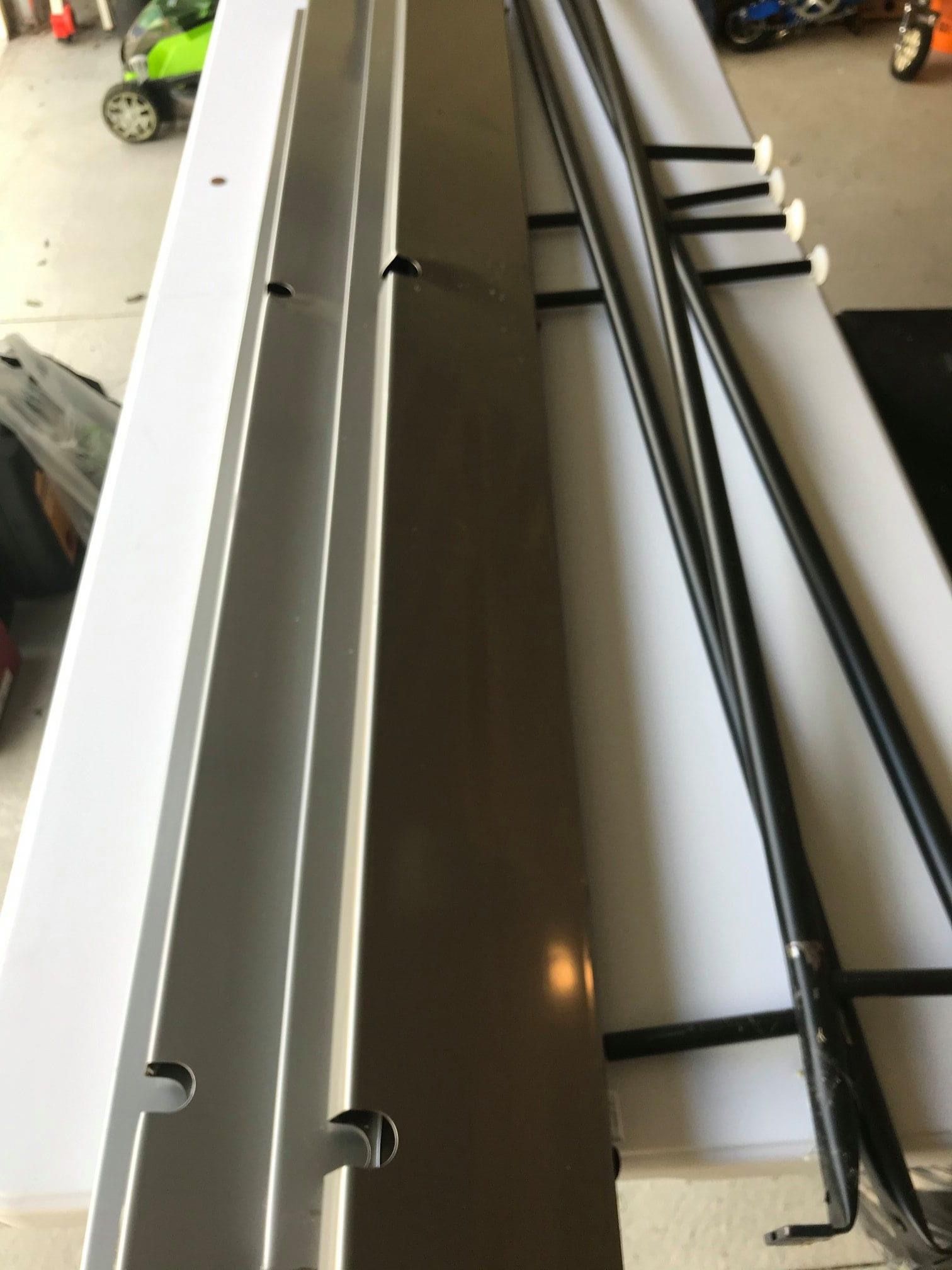 king size bed frame 4 metal panels, 3 cross bars with feet, have all hardware, this sits on the floor, used for 7 years pd $300 asking $75