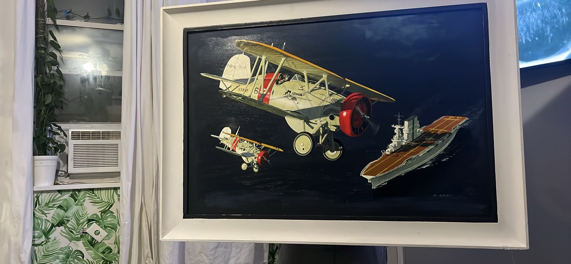 Over the Sara by David Gray -Two Boeing F4B-4's of Fighting 6 pass over the USS Saratoga during the golden age of naval aviation.