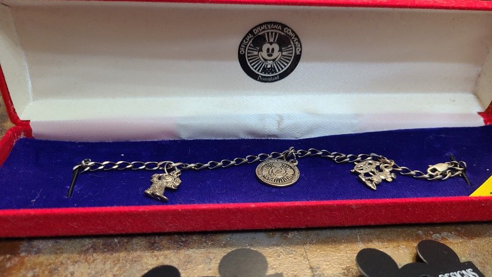 Attention Disney collectors New in box Disney sterling silver charm bracelet with 6 charms. Mickey x 3 charms, Minnie, Goofy, Dumbo. $200 cash, no scams, Will remove ad once sold so no need to ask if available. Leave contact info. For a response