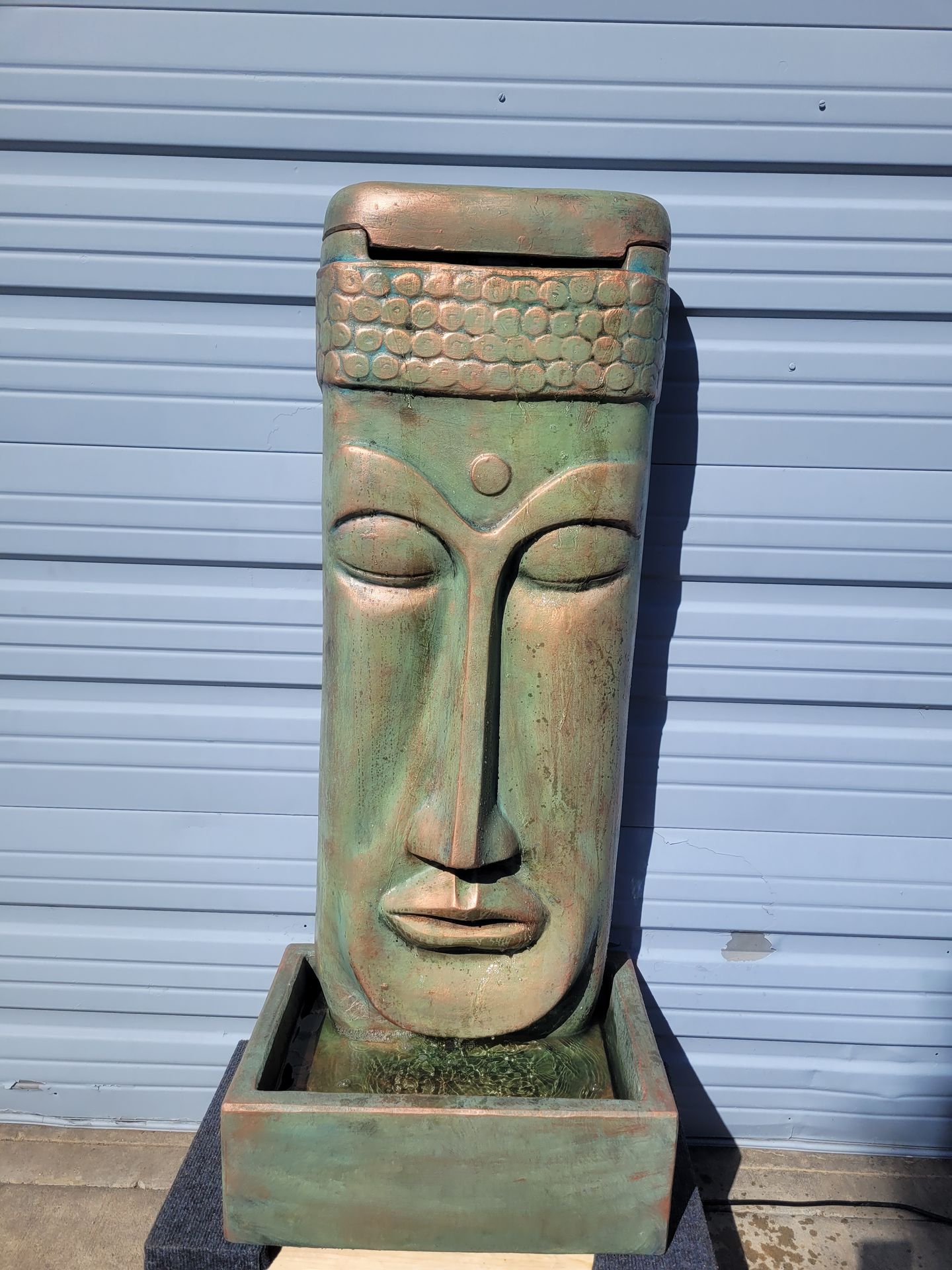 Concrete Buddha Fountain 54 inches tall 23 inches wide 16 inches deep Acid stained and sealed Pump installed Ready to go just ad water
